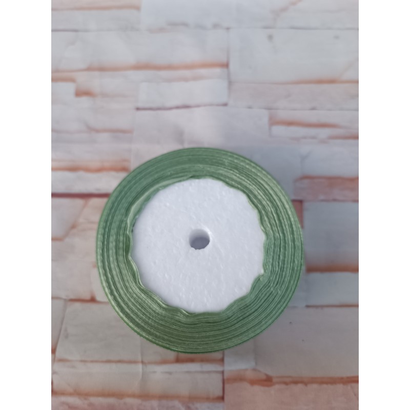 Лента атласная, односторонняя, 25 мм х 25 ярд, зеленый мох