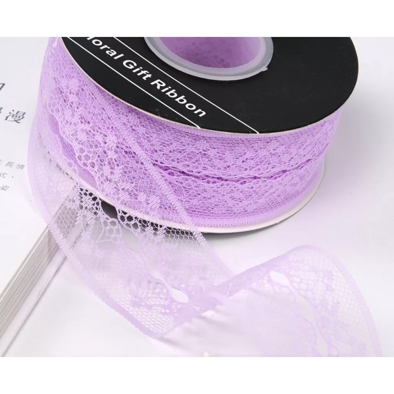 Лента декоративная "Кружево", полиэстер, 40 мм х 25 ярд., лаванда